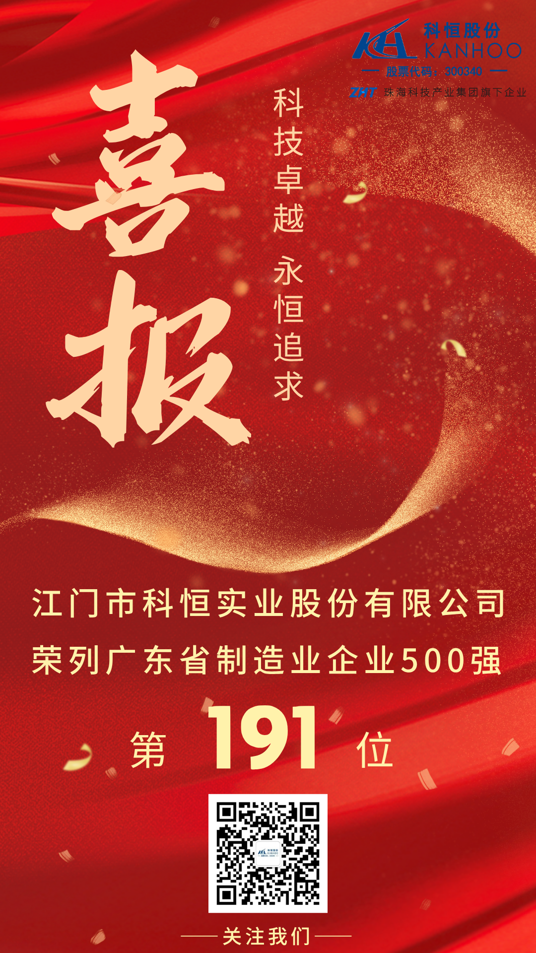 祝贺!江门市科恒实业股份有限公司入选广东省制造业500强